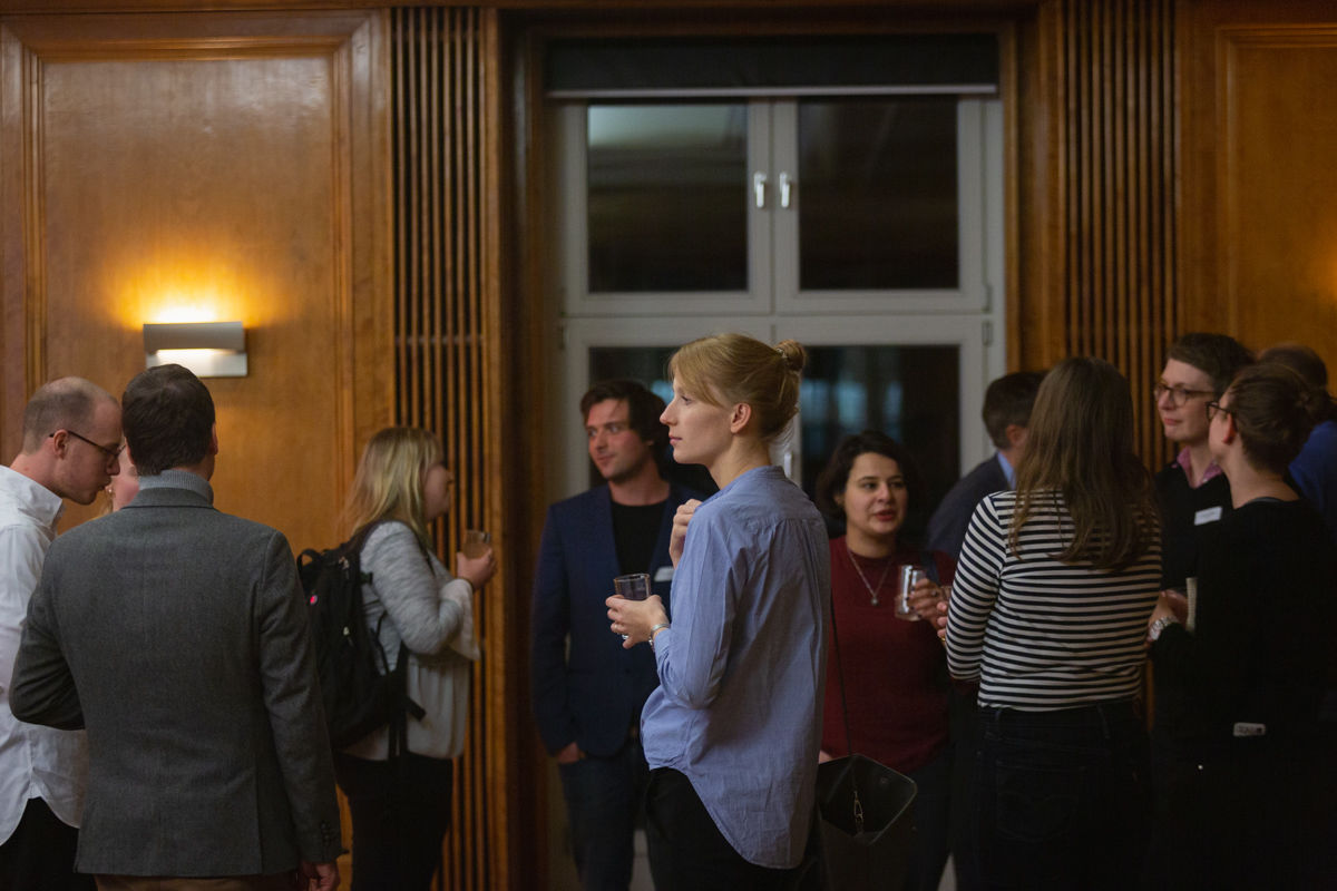 Doch nicht nur die Panelist_innen kamen zu Wort. Fragen der Anwesenden ergänzten und hinterfragten die Ausführungen gleichermaßen interessiert wie kritisch. Die Paneldiskussion mündete nahtlos in einen abschließenden kleinen Empfang, bei dem sich alle Teilnehmenden noch einmal in geistreichen und inspirierenden Konversationen zum Themas des Abends austauschten.