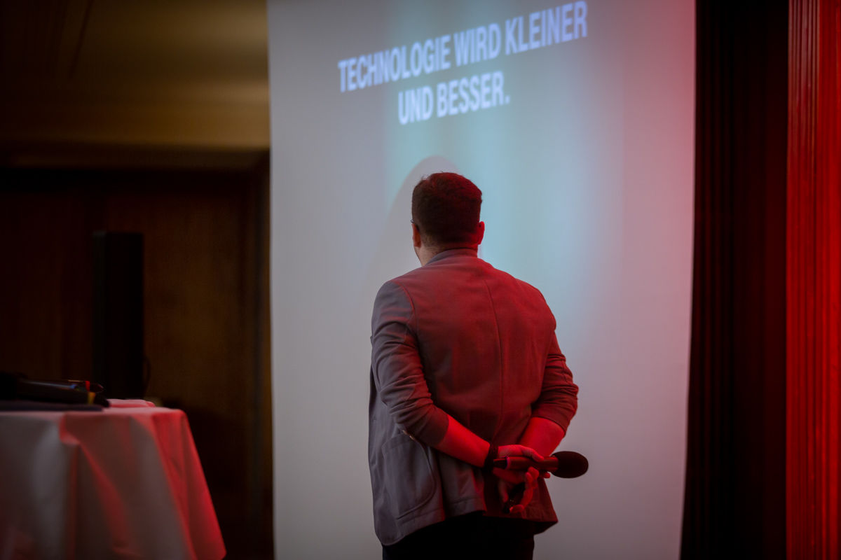 Eröffnet wurde der Abend von Elmar Arunov, der derzeit als Business Strategist bei den T-Labs - Telekom Innovation Laboratories arbeitet. Vorher war er Programm Manager in der Abteilung Portfolio, Strategy & Technology Foresight und Produkt Management in Bereichen wie Virtual Reality / Augmented Reality und Artificial Intelligence. In dieser Zeit hat er einige Produkteinführungen mitgemacht als auch zahlreiche Trendpublikationen und wissenschaftliche Arbeiten veröffentlicht, unter anderem im Bereich der KI und VR/AR.