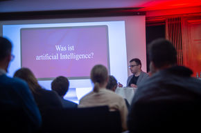 Mit einer Keynote versuchte Elmar Arunov, den Begriff der KI zu definieren bzw. aufzuzeigen, dass eine solche Definition nicht ohne Weiteres zu formulieren ist.