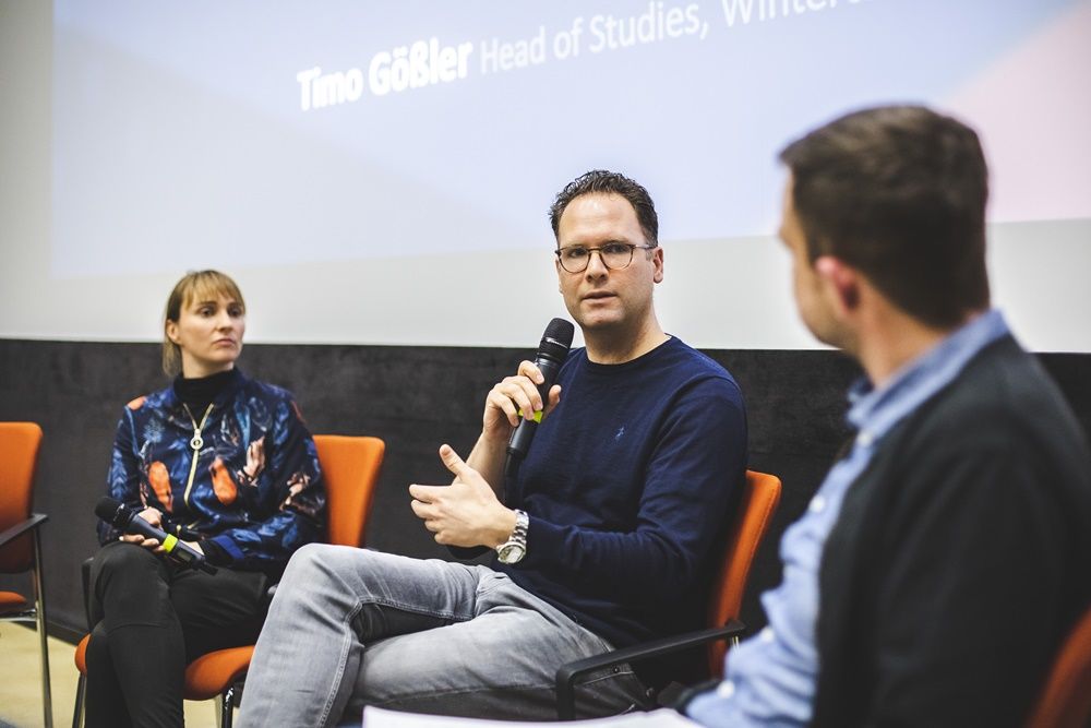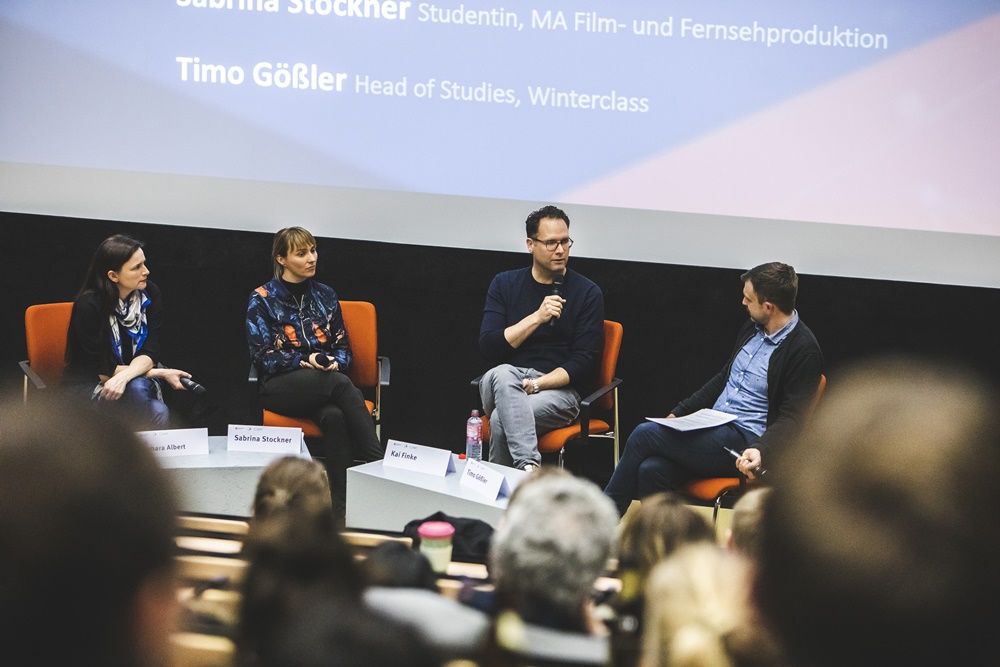 Nach einigen Begrüßungsworten von Prof. Dr. Susanne Stürmer (Präsidentin der Filmuniversität Babelsberg KONRAD WOLF) startete das Gespräch mit einem eindrucksvollen Trailer von Netflix. Anschließend begann das Panel, an welchem neben dem Hauptgast auch Prof. Barbara Albert (Professorin für Spielfilmregie) und Sabrina Stockner (Masterstudierende Film- und Fernsehproduktion) teilnahmen. Die Moderation übernahm Timo Gößler (Head of Studies | Winterclass).