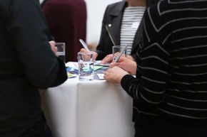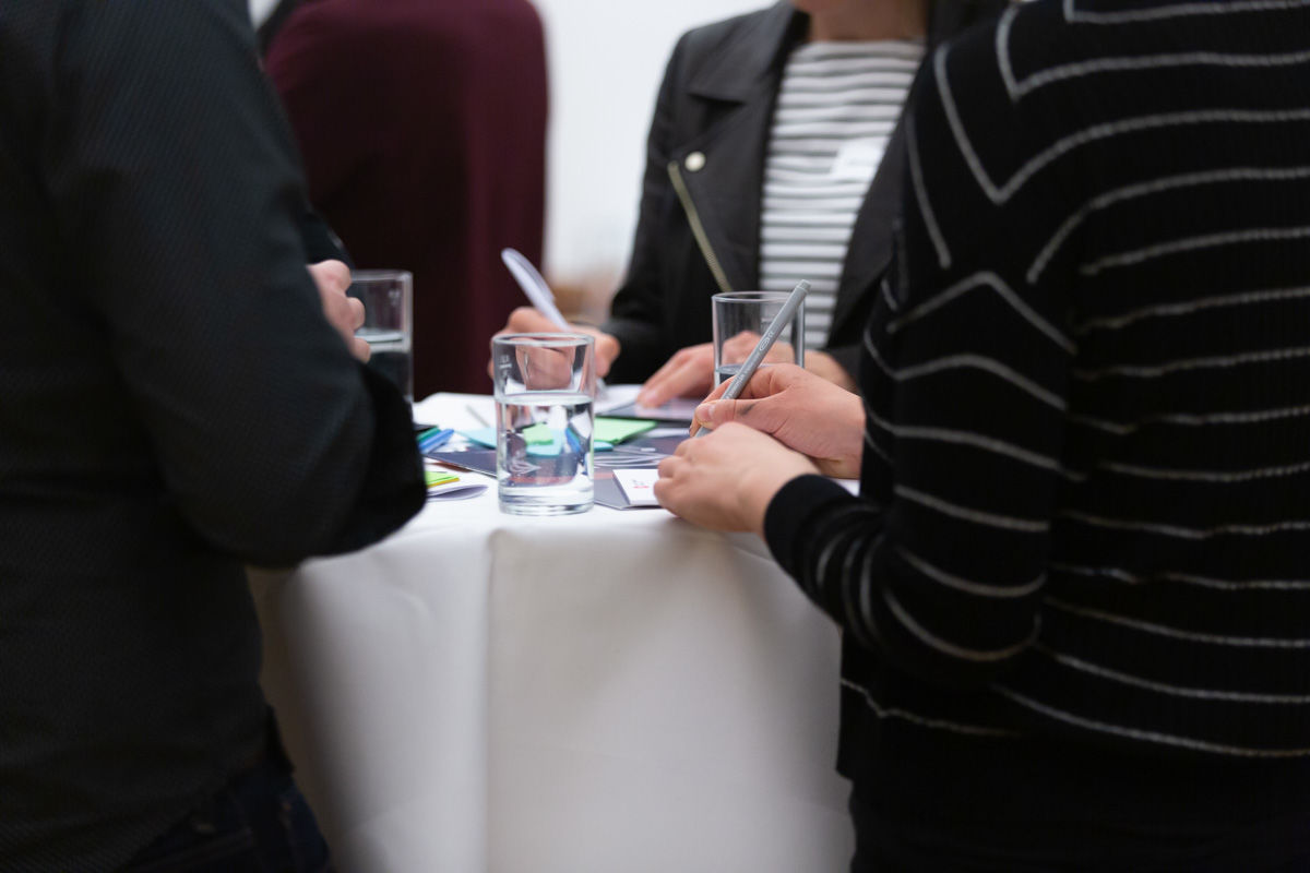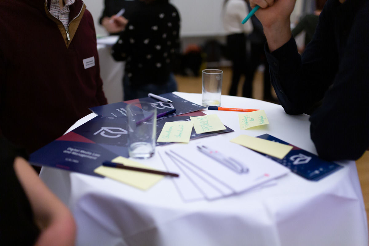 Im Anschluss an die Paneldiskussion konnten die Teilnehmenden in einem World Café ihre Fragen an die vier Gäste sowie an Philipp Künstle, den Projektleiter des Masterstudiengangs, stellen.