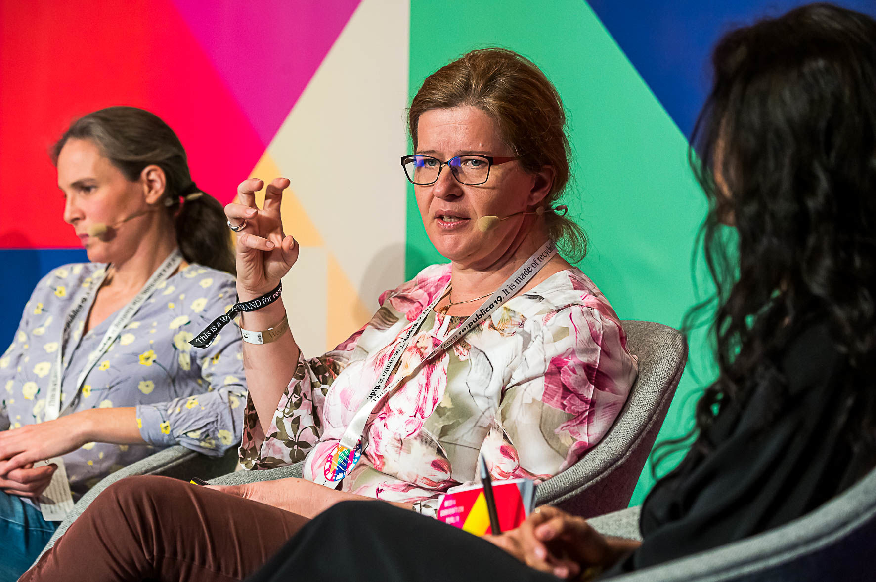 Die Panelist_innen waren sich einig, dass die Kosten für Studium und Weiterbildung in Deutschland im Vergleich zu anderen Ländern moderat seien. Es gibt eine Vielzahl von Qualifizierungsmaßnahmen für den Produktionsnachwuchs. Doch wieso müssen Sender und Produzent_innen trotzdem dringend nach Talenten suchen, welche die vollen Auftragsbücher realisieren? Ein Publikumsgast sprach prekäre Arbeitsbedingungen besonders im Mittel- und Unterbau der Produktionen an. Er wies darauf hin, dass der ausbleibende Nachwuchs hier nicht auf ein geringes Angebot von Qualifizierungsmaßnahmen, sondern auf Faktoren wie schlechte Arbeitsbedingungen und die fehlende Vereinbarkeit von Familie und Beruf zurückzuführen seien. Hier gäbe es tatsächlich viel Entwicklungsbedarf, gab Christian Rohde zu. Denn nicht jede kleine Produktionsfirma verfüge über die Möglichkeiten und Infrastruktur wie die UFA. In diesem Zusammenhang müsse der Ball aber auch an die Sender gespielt werden, die entsprechend niedrige Budgets von kleineren Produktionsfirmen weiterhin begrüßen und damit ein "Lohndumping" mittelbar unterstützen würden.